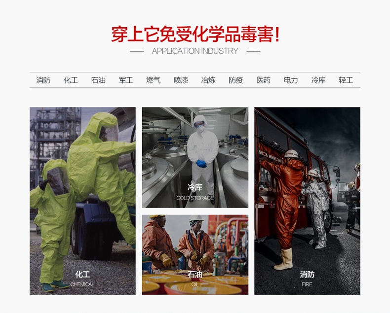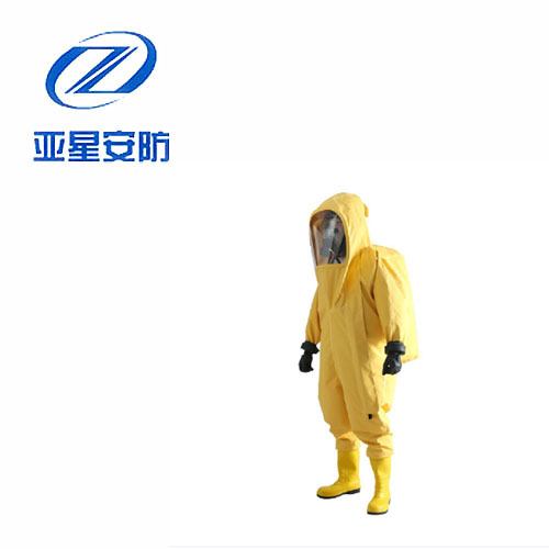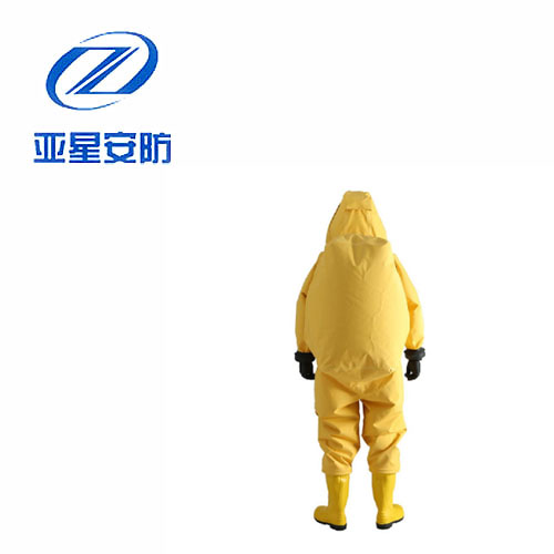 防化服是由防霧視窗及頭罩、連體衣褲、防化膠靴、雙防護(hù)腕、防化手套、雙密封拉鏈及水密封拉鏈組成的連體式服裝,使用時與正壓式消防空氣呼吸器配合使用。